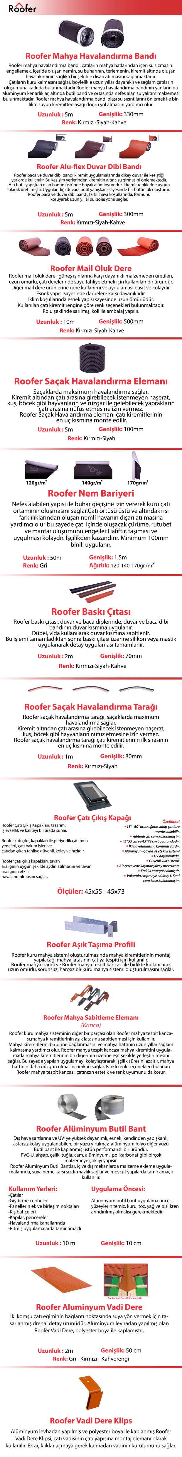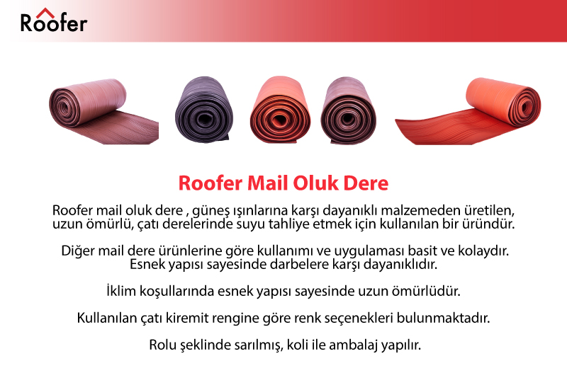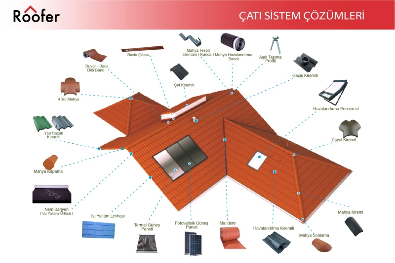 Roofer çatı bileşenleri atmosferik koşullara dayanıklıdır ve kiremit sistemleri ile uyumludur. Roofer çatı bileşenlerini ithal ediyoruz ve stoklu çalışıyoruz.