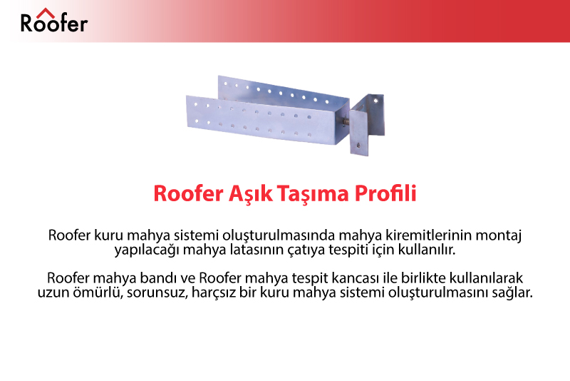 Mahya hattının iki tarafındaki kiremitlerin Roofer mahya bandının (alüminyum ve yapışkan tarafı) mahya kiremitinin altına gelecek şekilde yapıştırılması ile uygulanmalıdır. Bu sayede mahya hattından sızabilecek yağmur suyunun oluk hattına güvenle taşınmasını sağlar.