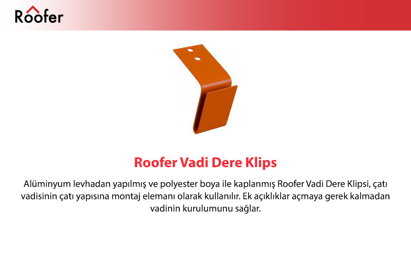 Mahya kiremitlerinin, hava koşulları (rüzgar, fırtına vs.) karşısında sabit kalması için Roofer Mahya Tespit Kancası kullanılır. Detay, Roofer Mahya Tespit Kancasının, mahya latasına vidayla sabitlemesi ile tamamlanır.